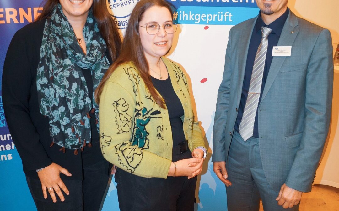 Unsere Auszubildende Melanie Vollprecht wurde bei der Bestenehrung der Industrie- und Handelskammer Hanau-Gelnhausen-Schlüchtern als eine der Top-Absolventinnen ausgezeichnet. Die Ehrung fand im Beisein von Ausbilderin Irina Zeller und Verleger und Geschäftsführer Oliver Naumann statt.