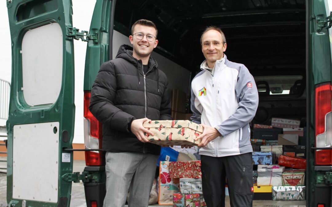 Bis zum 10. November konnten Pakete für Kinder in Rumänien, Bulgarien und der Ukraine im Kundencenter des Druck- und Pressehauses abgegeben werden. So kamen insgesamt 144 Pakete zusammen, die Kai Handel vom Kunterbunten Kinderzelt nun einsammelte. Mit gemeinsamen Kräften verluden Florian Michel vom Druck- und Pressehaus Naumann und Handel die Pakete in den Transporter. Dort waren bereits einige Pakete gelagert, denn für Handel war es bereits die dritte Sammelstelle an diesem Tag – und drei weitere standen noch vor ihm.„Insgesamt gibt es über 100 verschiedene Sammelstellen für die Weihnachtspäckchen“, sagte Handel. „Das sind beispielsweise Schulen, Kindergärten, Vereine oder Firmen.“ Bevor die Pakete auf die Reise Richtung Osten gehen, wird allerdings jedes einzelne Paket noch einmal geöffnet und kontrolliert, sagt Handel. Es werde geprüft, ob der Inhalt beschädigt ist oder ob etwas Wichtiges fehlt.