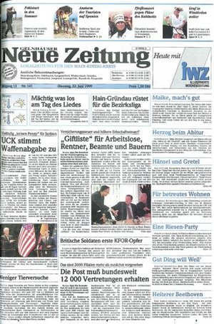 Umstritten ist eine Layout-Änderung der GNZ: Der Titelkopf mit dem Schriftzug “Gelnhäuser Neue Zeitung” rutscht mit der Ausgabe vom 22. Juni um acht Zentimeter nach unten. Den oberen Rand der Titelseite zieren fortan die Höhepunkte der Ausgabe als Anreißer mit Bild. Die Neuerung wird kontrovers diskutiert und nicht von jedem für gut befunden.